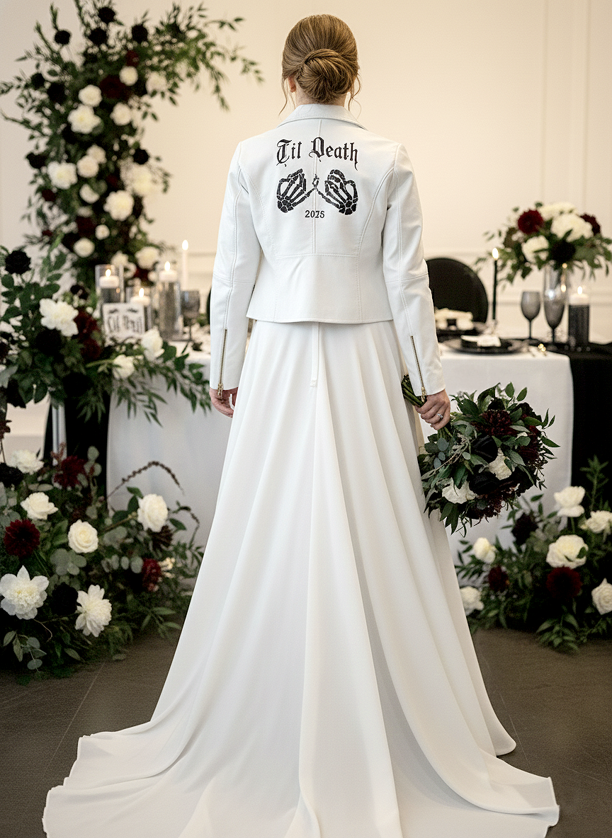 Skeleton Hand Till Death Leather Jacket, Custom Bride Leather Jacket, Custom Mrs Jacket, Customized Wedding Jacket, Personalized Bridal Leather Jacket, Personalized Leather Jacket, Wedding Leather Jacket for the Bride, Bridal Leather Jacket, Black Leather Jacket, Black Bridal Wedding Jacket, Black Bride Leather Jacket, Bachelorette Party Leather Jacket, Leather Jacket for Bride, Custom Bride Jacket, Bridal Cover Up