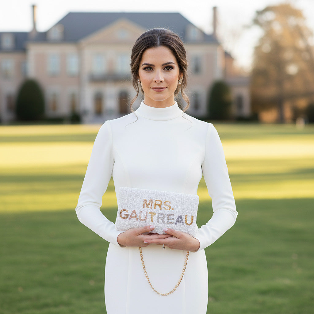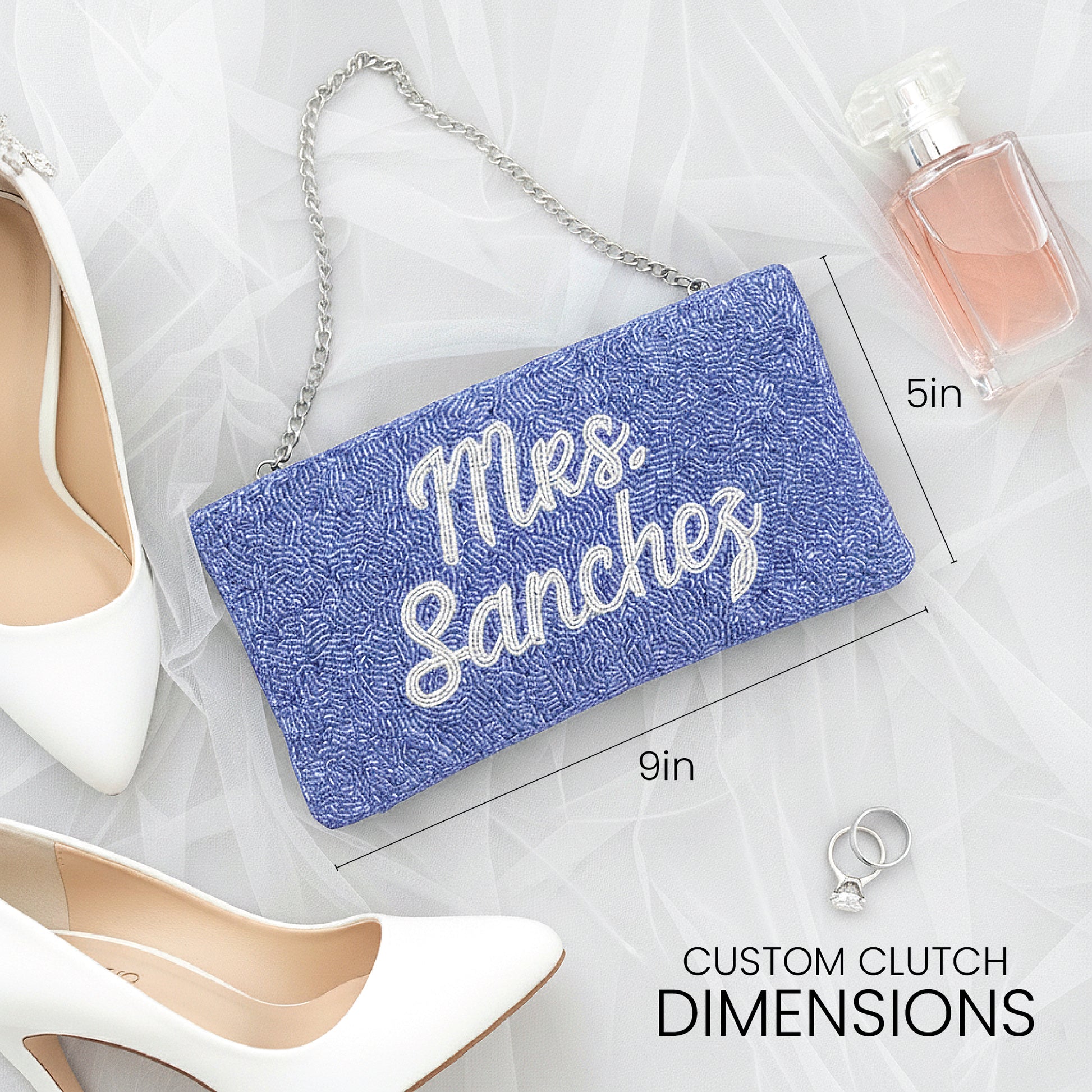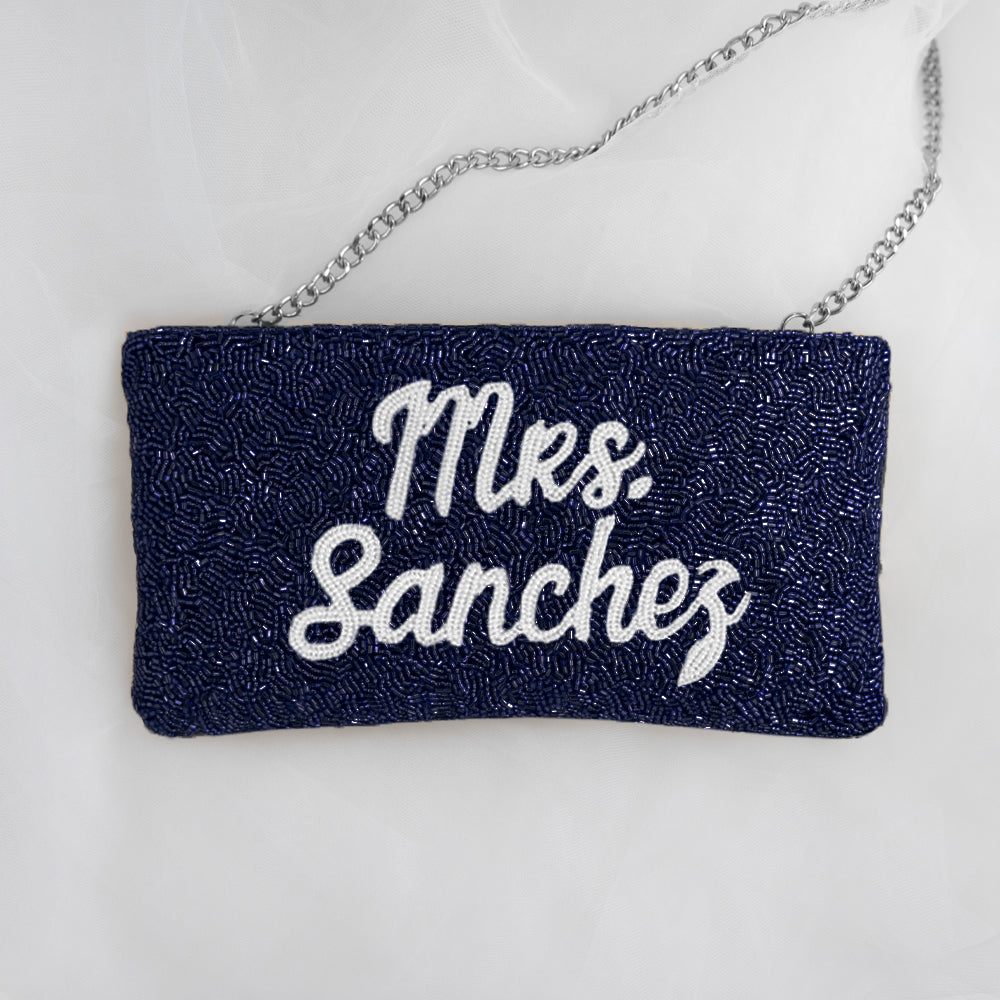This bridal clutch will be perfect on your wedding day! This beaded wedding clutch is handmade to perfection and has an intricate pattern that gives an elegant and classy addition to any outfit. With a sparkling beaded front, velvet back and short chain, this hand clutch would make a great evening bag for weddings, proms, black tie events, dinner out, or holiday parties. This arm purse has a zipper closure and can carry all your essentials throughout any exciting occasion with ease. Get this purse clutch for yourself or surprise the bride with a gift on her most-awaited day!