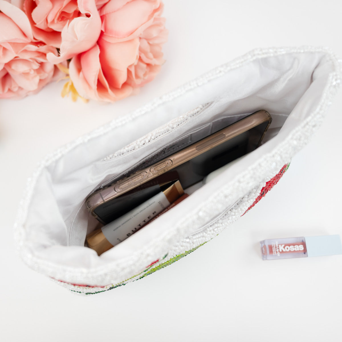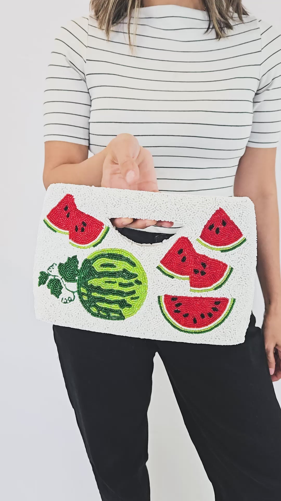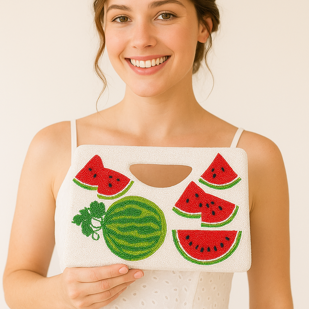 Designed with both style and practicality in mind, the bag offers ample space for your daily essentials, like a wallet, keys, and phone. The magnetic closure provides ease and functionality keeping your items secure. Whether you're heading to a casual outing or a special event, our beaded watermelon purse adds a burst of color and personality to any outfit. It's the perfect way to carry a slice of summer wherever you go!