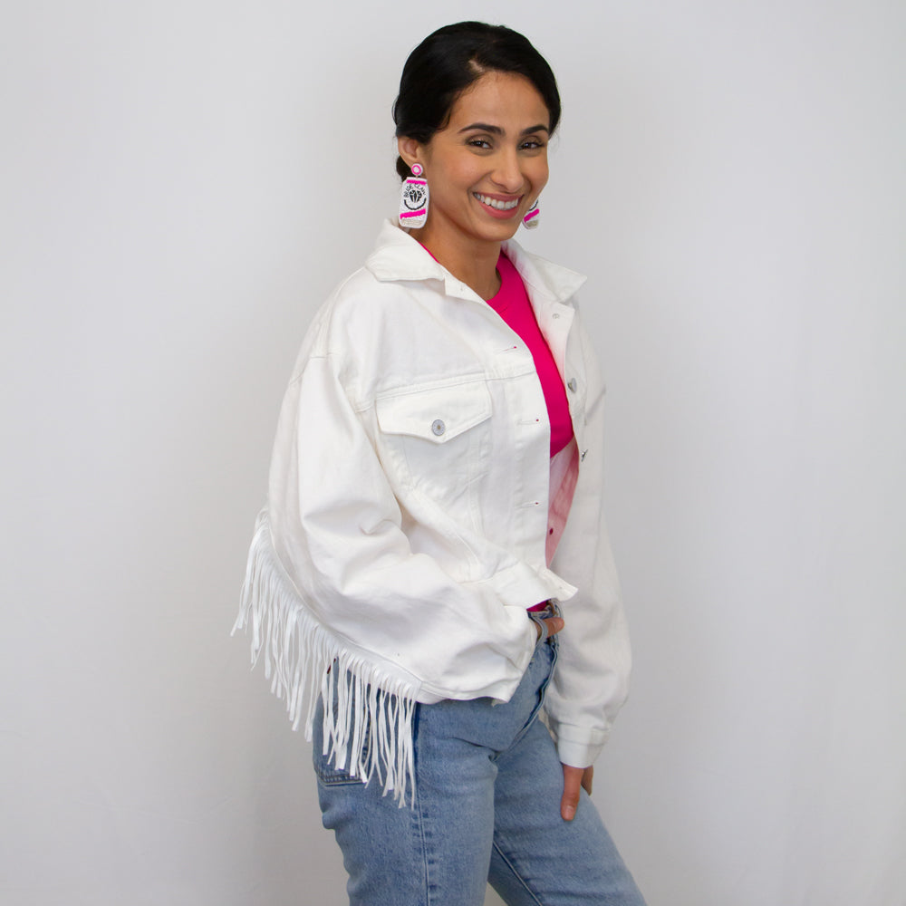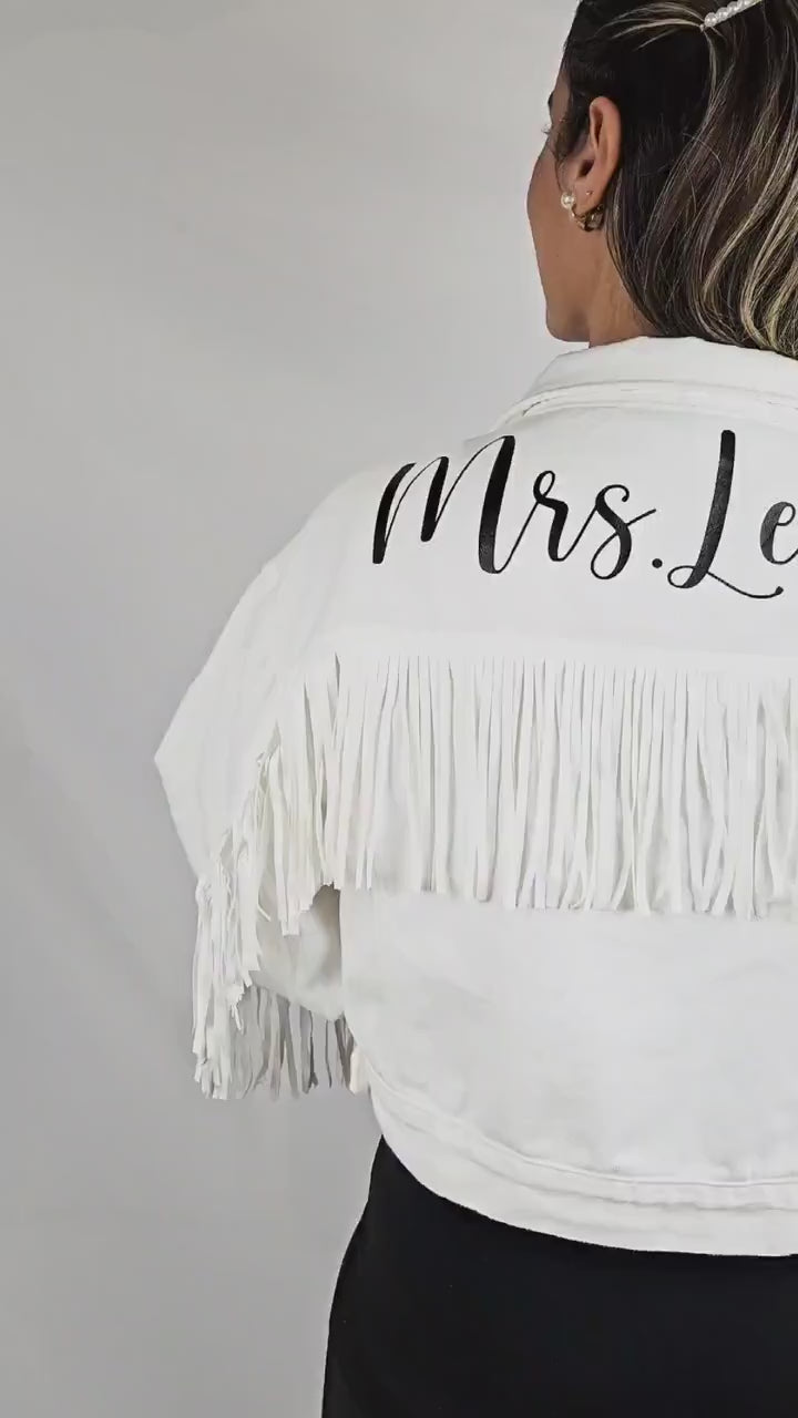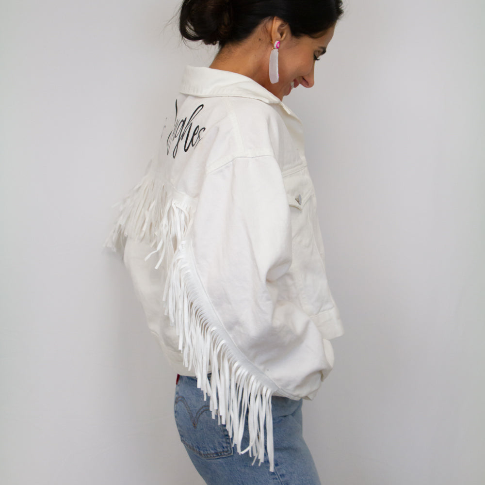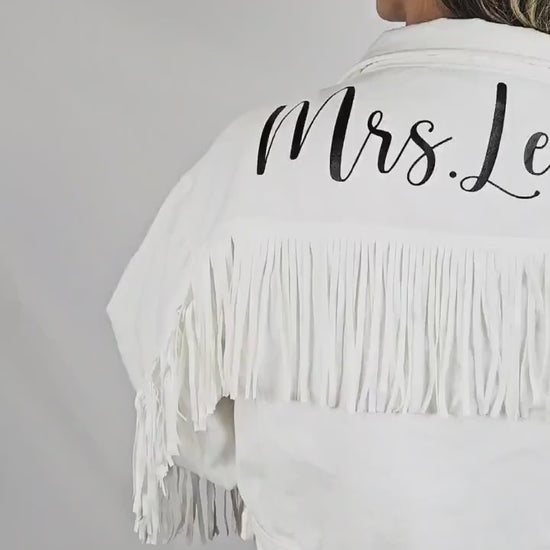 White Fringe Bride Denim Jacket - Bridal Jean Jacket