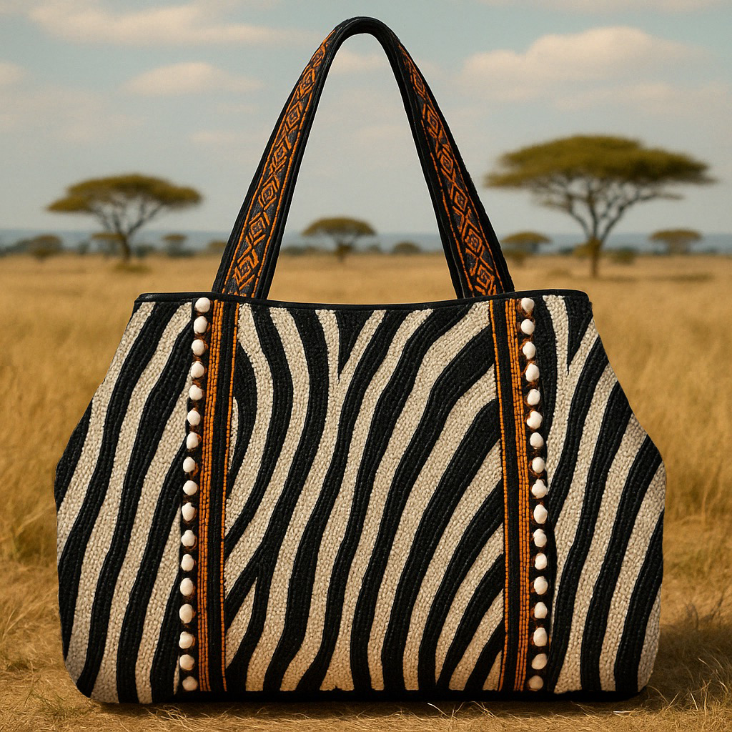 Stride boldly into the wild with our Zebra Safari Beaded Tote, a striking tribute to the untamed beauty of Africa’s savannah.
