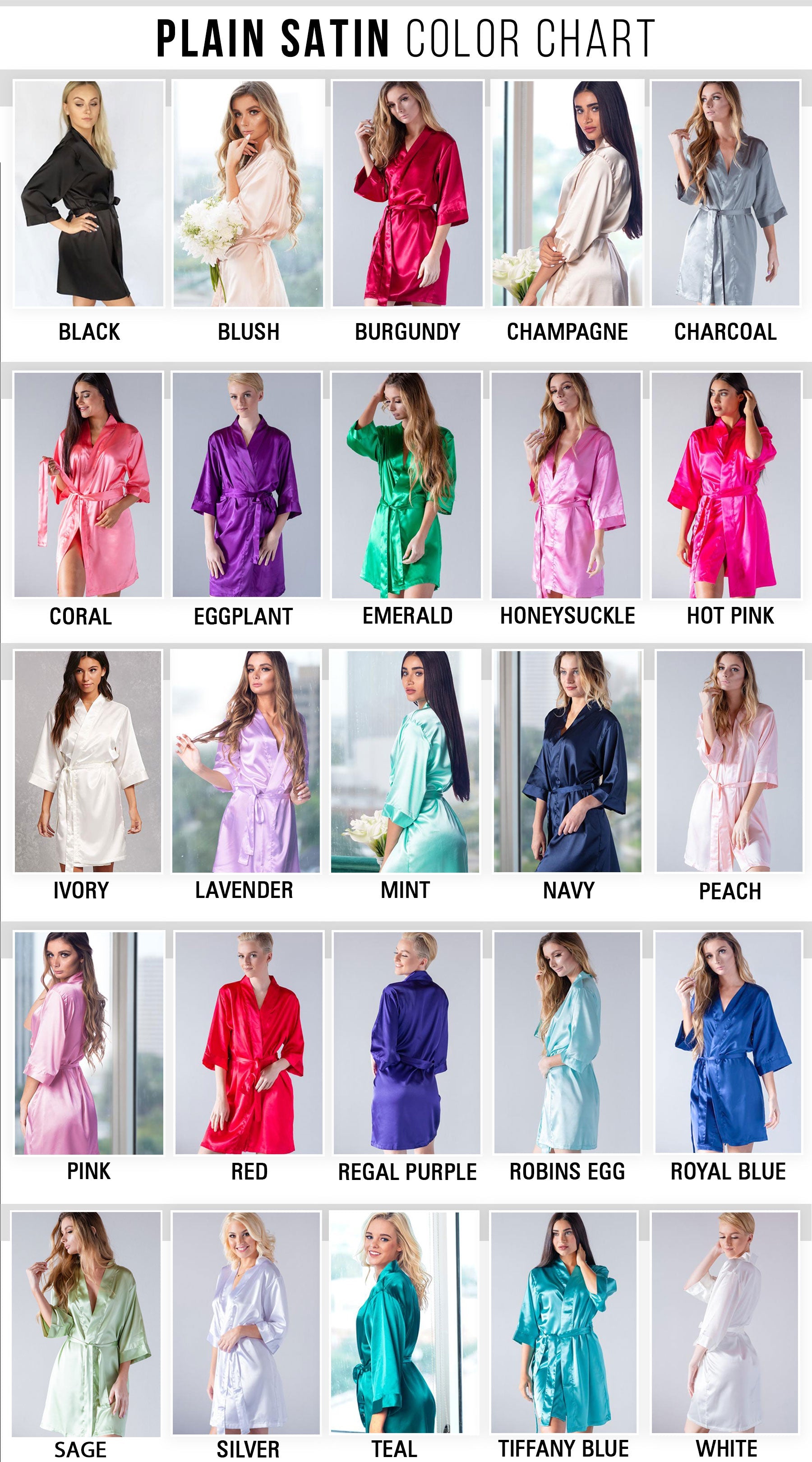 Choose the kimono satin robe color, size, and text color to match our crown style silk kimono robe to your wedding theme. Feel comfortable customizing the front or back of the bridesmaid and bridal robe featuring by name, nickname, or monogram in the matching font style for your special day.