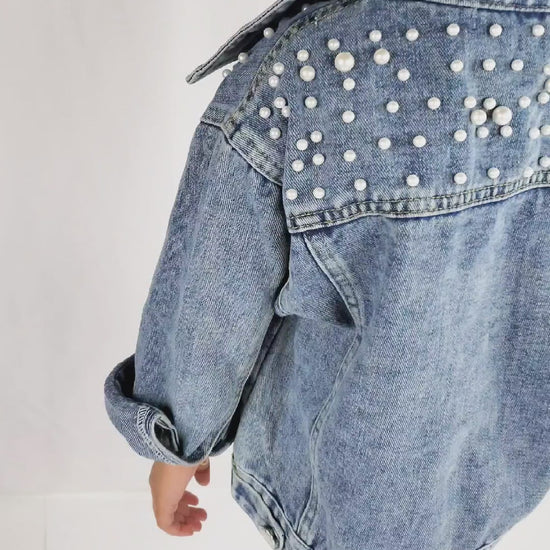 These customizable mama and me denim jackets are a great way to match your little one. Made with pearls securely fastened by pins across the shoulders and front, these jackets are quality and make for a fun and playful touch! Give this matching mom and daughter gift to a sister or friend.
