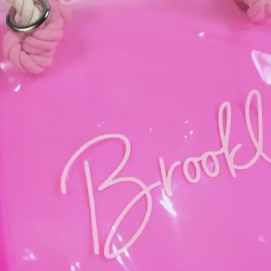 These lightweight custom neon beach tote bags are perfect for beach bachelorette bags, beach bags, vacation totes, pool party totes, or honeymoon vacation gifts. They also make great bridesmaid tote bags or beach bachelorette party gifts for your girls! Choose from a variety of colors and customization options to fit your girls styles or your party theme. These waterproof beach bags are finished with a braided rope handle and expandable bottoms to store your beach necessities. Our custom tote bags will allow you to carry all your beach goodies throughout the day.