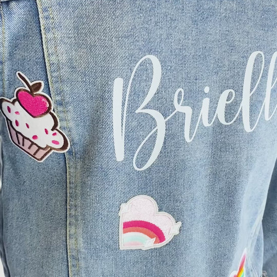 These customizable Mama and Mini Retro Patch Denim Jackets are a great way to match your little one. Made with pearls securely fastened by pins across the shoulders and front, these jackets are quality and make for a fun and playful touch! Give this matching mom and daughter gift to a sister or friend.